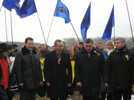 Впевнено майоріли прапори УНП, але вони весь час тримались на певній відстані від БЮТу та НСНУ. Провладну колону очолювали керівники облдержадміністрації Владислав Атрошенко та Олег Обушний. Соціалісти на чолі з Миколою Рудьковським підтягнулись до Шевченка пізніше за інших. В рядах соціалістів помаранчевої символіки не було помічено взагалі.
